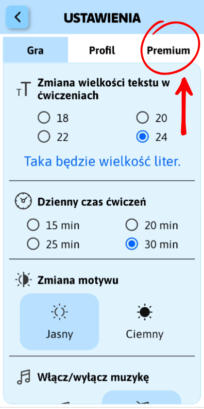 Wybierz zakładkę PREMIUM.