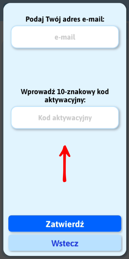Wpisz otrzymany kod dostępu i zatwierdź.